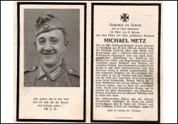 Gefallener 2. Weltkrieg; Eltern: Heinrich Metz u. Maria geb. Schornstein; 1.10.1940 Einberufung; |