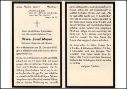 ∞ 15.5.1908 Josef Meyer, † 9.9.1944; 5 K.; 2 Söhne im 2. Weltkrieg vermisst; |