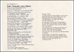 5.12.1932 Ordensgelübde Patres Assumptionisten in Taintegnies; Priesterweihe Löwen 26.2.1939; Prof. für Dogmatik in Bergeik/Holland 1940-46; Feldgeistlicher Niederländ. Armee 1946-58; Kaplan in Waldbröl 1958-59; Pfarrer an St. Augustinus in Bonn-Duisdorf 1959-63; an St. Elisabeth in Neuss-Reuschenberg seit April 1963 |
