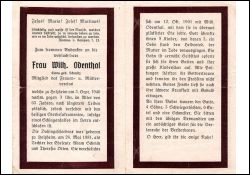 Längeres Leiden; Schlaganfall; Eltern: Adam Schmitz u. Theresia geb. Otten; ∞ 12.10.1901 Wilhelm Odendahl; 8 K., davon 3 ** (davon 1 im 2. Weltkrieg gefallen); |
