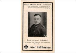 Gefallener 2. Weltkrieg; Eltern: Heinrich Rothhausen u. Margaretha geb. Kivelitz; ∞ 9.11.1935 Elisabeth Claßen aus Allrath; 2 K.; Einberufung 12.5.1940 |