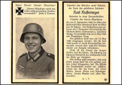 Gefallener 2. Weltkrieg; Eltern: Heinrich Rustemeyer u. Theodora geb. Gratze; ∞ 6.5.1942 Magdalene Krug; 12.5.1940 eingezogen; 25.7.1942 verwundet, nach 3 Wochen wiederhergestellt |