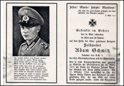 Gefallener 2. Weltkrieg; Eltern: Johann Theodor Schmitz u. Anna Josefa Lenders; ∞ 11.10.1940 Agnes Sophia Rahier aus Holzheim; 1 K. (Totenzettel unvollständig) |