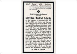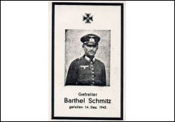 Gefallener 2. Weltkrieg; Eltern: Wilhelm Schmitz u. Elisabeth geb. Pütz, † ; 23.3.1944 Einberufung |