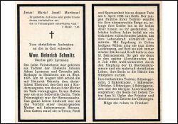 Eltern: Adam Lyrmann u. Cornelia geb. Borkopp; ∞ 10.8.1895 Heinrich Schmitz; 4 K., davon 3 †; ein halbes J. leidend |