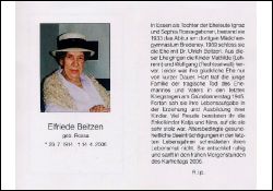 Eltern: Ignaz u. Sophia Rossa; 1933 Abitur Mädchengymnasium Bredenay; ∞ 1939 Dr. Ulrich Beitzen, trag. Tod in letzten Kriegstagen Gründonerstag 1945; 2 K.; Mathilde (Lehrerin) u. Wolfgang (Rechtsanwalt); |