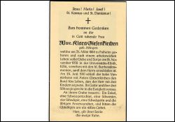 Wohnort Pulheim; ∞ 24.6.1910 Anton Giesenkirchen, †; 3 Söhne, alle drei † |