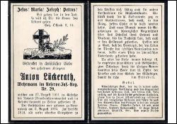 Gefallener 1. Weltkrieg; bei Noyers verwundet; 9 Monate war die Familie über sein Schicksal im Ungewissen |