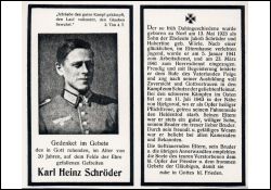 Gefallener 2. Weltkrieg; Eltern: Jakob Schröder u. Hubertine geb. Wörle; 23.3.1941 Einberufung; |