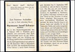 Apotheker; Eltern: Apothekenbesitzer Anton Schwar u. Antonie geb. Schröder; ∞ 11.9.1937 Maria Dorothea Loer; 2 K.; seit 1939 Apotheker in Holzheim |