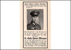 Gefallener 2. Weltkrieg; Eltern: Heinrich Winzen u. Cäcilia geb. Hagen; ∞ 28.8.1938 Katharina Burbach aus Holzheim; Mai 1940 Einberufung; |