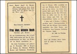 Eltern: Wilhelm Kreuer u. Katharina geb. Friederichs, † 22.5.1941; ∞ 2.2.1902 Wilhelm Beuth; 4 K., davon 1 früh †; kränkelte nach Tod des Mannes |