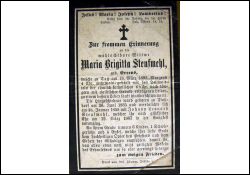 Längeres Leiden; ∞ 18.1.1858 Johann Leonard Steufmehl, † 19.3.1887; 6 überlebende Kinder |