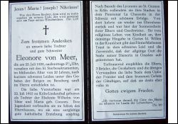 Eltern: Wilhelm von Meer u. Maria geb. Conzen; Lyceum an St. Gereon, danach Pensionat La Chassotte in der Schweiz; danach Rückkehr in die Familie |