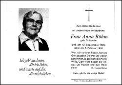 Böhm, geb. Schonder | Vorname: |