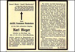 Sohn v. Helene u. Heinrich Bieger, gefallen im 2. Weltkrieg |