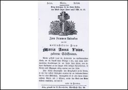 54 J.; 25 J. Ehe; heftiges Nervenfieber; vierwöchiges Krankenlager; 2 überlebende Söhne; Druck in Köln |