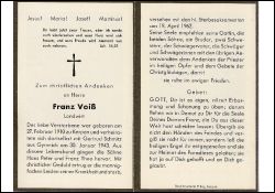 ∞ 30.1.1943 Gertrud Schmitz aus Gymnich; 2 Söhne (Hans Per, Franz Theo); Krankheitsleiden; Druck in Kerpen |