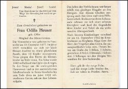 Mitgl. Mütterverein; ∞ 1905 Jakob Heuser, † 1928; 12 K., davon 9 früh †; 1 Sohn im 2. Weltkrieg in Russland gefallen; Geschäft |