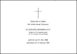 M. Adeloga O.S.F., geb. Bommes | Geburtsdatum: |