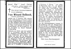 Tod Folge eines Unglücksfalles; Eltern: Leonhard Breitmar u. Anna Hubertine geb. Müller; ∞ 18.9.1887 Winand Roßbach aus Blatzheim, Sohn von Anton Roßbach u. Elisabeth geb. Mausbach; 8 K., davon 3 † (davon 1 Sohn 1916 im 1. Weltkrieg gefallen; |