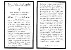 Langes, schweres Leiden; ∞ 31.5.1911 Franz Schmitz aus Straberg, † 4.2.1938; 4 K. |