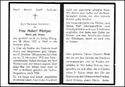 ∞ 12.11.1912 Futtermittelhändler Hubert Köntges; 8 K.; ältester Sohn Josef im 2. Weltkrieg in Rußland 1941 gefallen; Tochter Magdalene † 1952 |