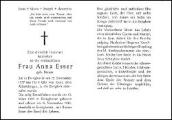 ∞ 8.11.1913 in Evinghoven Reiner Esser; 6 K., davon 1 Sohn im 2. Weltkrieg gefallen; |