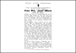 ∞ 21.4.1914 Bäckermeister Josef Effertz, † 23.2.1944; 3 Söhne; zuletzt alle drei Söhne zum Miltär eingezogen |