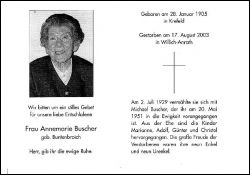 Buscher, geb. Buntenbroich | Vorname: |