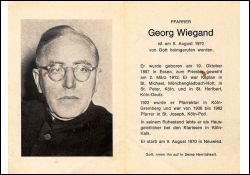 Priesterweihe 2.3.1912; Kaplan in Mönchengladbach-Holt u. Köln (St. Peter; St. Heribert in Deutz); 1922 Pfarrrektor in Köln-Gremberg; 1936-62 Pfarrer in Köln-Poll |