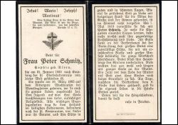 Ihr ganzes Leben auf Gut Muchhausen; ∞ 1913 Peter Schmitz; 6 K., davon 2 †; starb am Tag nach der Geburt des 6. Kindes |