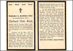 Eltern: Postmeister Gerhard Kück u. Anna geb. Kratzborn; Kaufmann; ∞ 27.1.1940 Luzie Nahrings aus Lucherberg; gleich nach der Hochzeit zum Heer, durch tückische Krankheit unerwartet schnell im 2. Weltkrieg †; |