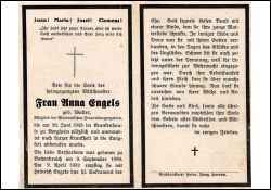 Mitgl. Marian. Frauenkongregation; ∞ 9.4.1932 Heinrich Engels; 1 K.; Ehemann zur Wehrmacht eingezogen |