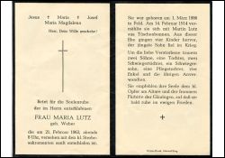∞ 14.2.1914 Martin Lutz aus Tüschenbonnen; 4 K., davon jüngster Sohn im 2. Weltkrieg gefallen; Druck in Hennef/Sieg |