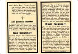 Opfer eines ruchlosen Einbruchs in den Nacht 17./18.6.1945, bei dem auch seine Tochter Maria ermordet wurde; Eltern: Heinrich Brauweiler u. Anna Carolina geb Schäfer; ∞ 27.11.1919 Maria Wirtz; |