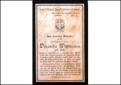 56 J.; längeres Leiden; 31 J. verh.; 8 überlebende Kinder; ∞ 1855 Gottfried Wißkirchen, * 25.11.1825 in Kirchheim, † 27.7.1888 in Ludendorf |
