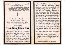 48 J. verh. Mit Bernhard Esser; 8 K.; 1 Sohn im 2. Weltkrieg gefallen; 24 J. lang gelähmt |