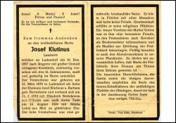 Eltern: Josef Klutinus u. Barbara geb. Berresheim; ∞ 14.2.1919 Elisabeth Nettekoven aus Ollheim, † 14.8.1924; ∞ Sibilla Lehrs aus Miel; Brudermeister u. Musiker |