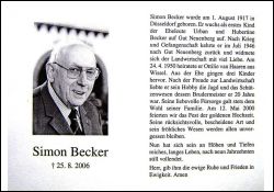 Eltern: Urban u. Hubertine Becker auf Gut Neuenberg; Landwirtschaft; Juli 1946 Rückkehr aus Kriegsgefangenschaft; ∞ 24.4.1950 Ottilie van Haaren aus Wissel; 3 K.; 20 J. Brudermeister der Schützenbruderschaft; 12.5.2000 Goldhochzeit |