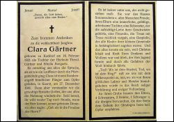 Opfer 2. Weltkrieg: Tod durch Bombenangriff feindl. Flieger; Jungfrau; Eltern: Theodor Gärtner u. Sibylla geb. Bongartz; |