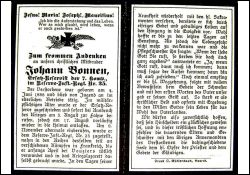 Gefallener 1. Weltkrieg; 3.8.1914 Einberufung, erneut am 8.11.1914; Anfang April 1915 b. Vouziers tötlich verwundet; Druck in Heerdt |