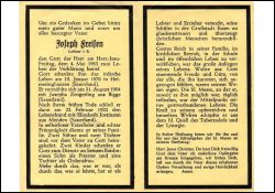 ∞ 31.8.1904 Josepha Zengerling aus Bigge, Sauerland, †; ∞ 22.2.1922 Elisabeth Jostmann aus Menden, Sauerland; 4 seiner Kinder †; 1 Sohn Priester, 1 Tochter Ordensfrau; Lehrer in der Großstadt Essen |