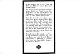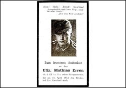 Gefallener 2. Weltkrieg; Eltern: Johann Erren u. Agnes geb. Wienen; Einberugung Oktober 1941; nach schweren verwundungen im Lazarett |