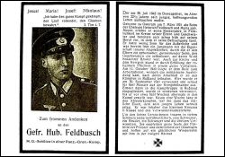 Gefallener 2. Weltkrieg; Eltern: Heinrich Feldbusch u. Maria geb. Meyer; 30.9.1941 zum 1. Masl verwundet, ein halbes Jahr erneut; |