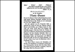Jungfrau; Eltern: Johann Greven u. Christine geb. Nüßgen, † 1933; seit Tod der Mutter führte sie mit jüngster Schwester den Haushalt |