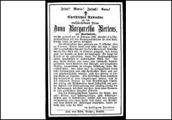 ∞ 7.6.1867 Jakob Mertens; 12 K., davon 2 †; langwieriges Leiden, mehrere Jahre Krankenlager; |