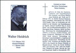 Eltern: Otto Heidrich (Gastwirt, Landwirt, Ziegeleibesitzer) u. Anna geb. Preiß; 1935-38 kaufm. Lehre in Leobschütz; Klein- u. Großhandelsunternehmen in Brieg, Schlesien; Wehrdienst 1940-44; schwere Verwundung vor Sewastopol; Vertreibung aus der Heimat 1946; ∞ 1962 Barbara Kurtz in Rheinbreitbach; Kinder: Matthias 1963, Christian 1965; zuletzt tätig im kaufm. Bereich der Gas. u. Wasserwerke Grevenbroich (bis 1981) |