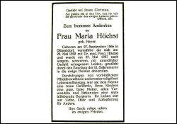 ∞ 25.5.1893 Dr. med. Ferdinand Höchst; langes, schweres Leiden; Kinder |