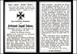 Gefallener 1. Weltkrieg; Eltern: Martin Johnen u. Anna geb. Noehlen; Schlosserhandwerk; 1914 Einberufung; gefallen am Chemin des Dames |